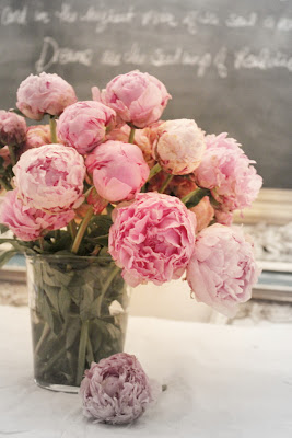 Ohh those gorgeous cottage blooms!On the dining room table,
